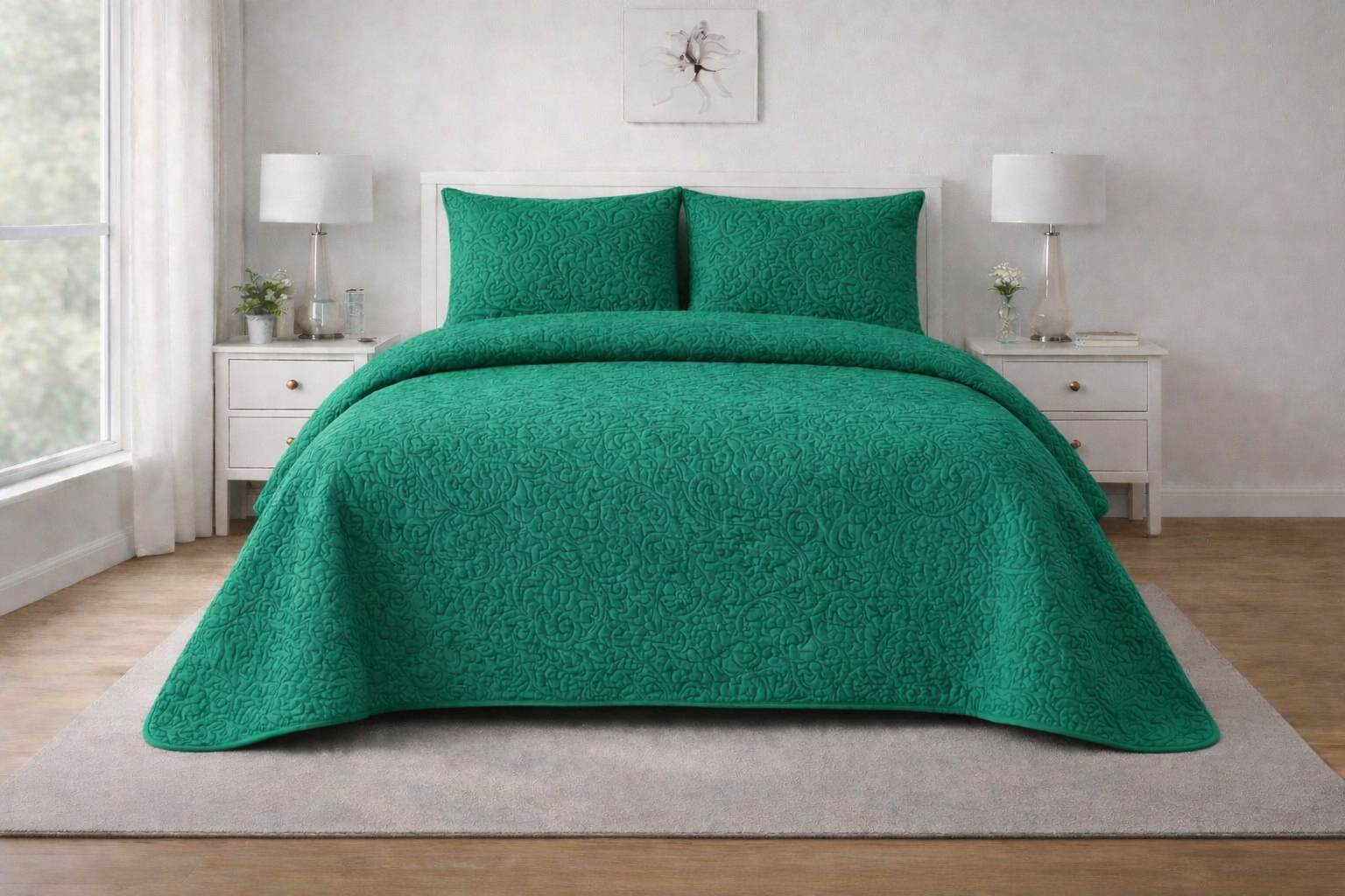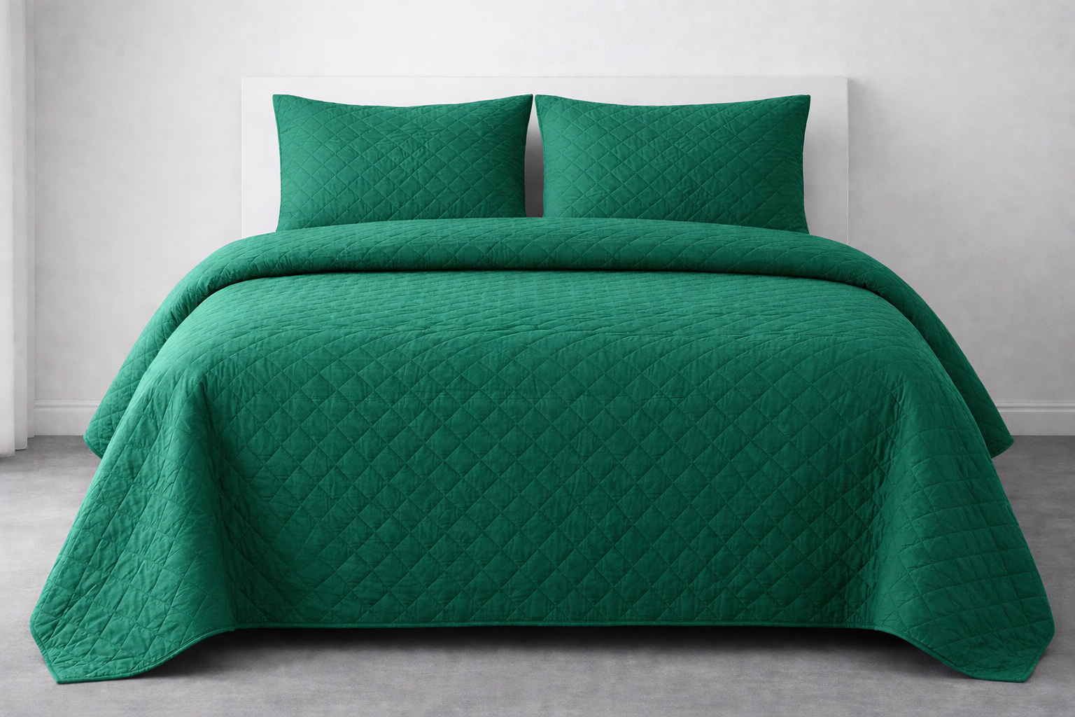 EMERALD GREEN QUILTED BEDSPREAD 3PCS